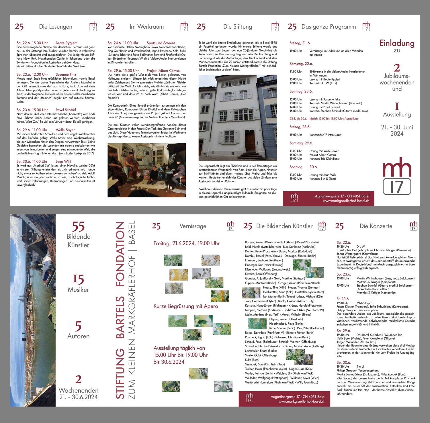 22. bis 30. Juni 2024: Jubiläumsausstellung 25 Jahre Stiftung Bartels Foundation, Zum kleinen Markgräflerhof, Basel. |