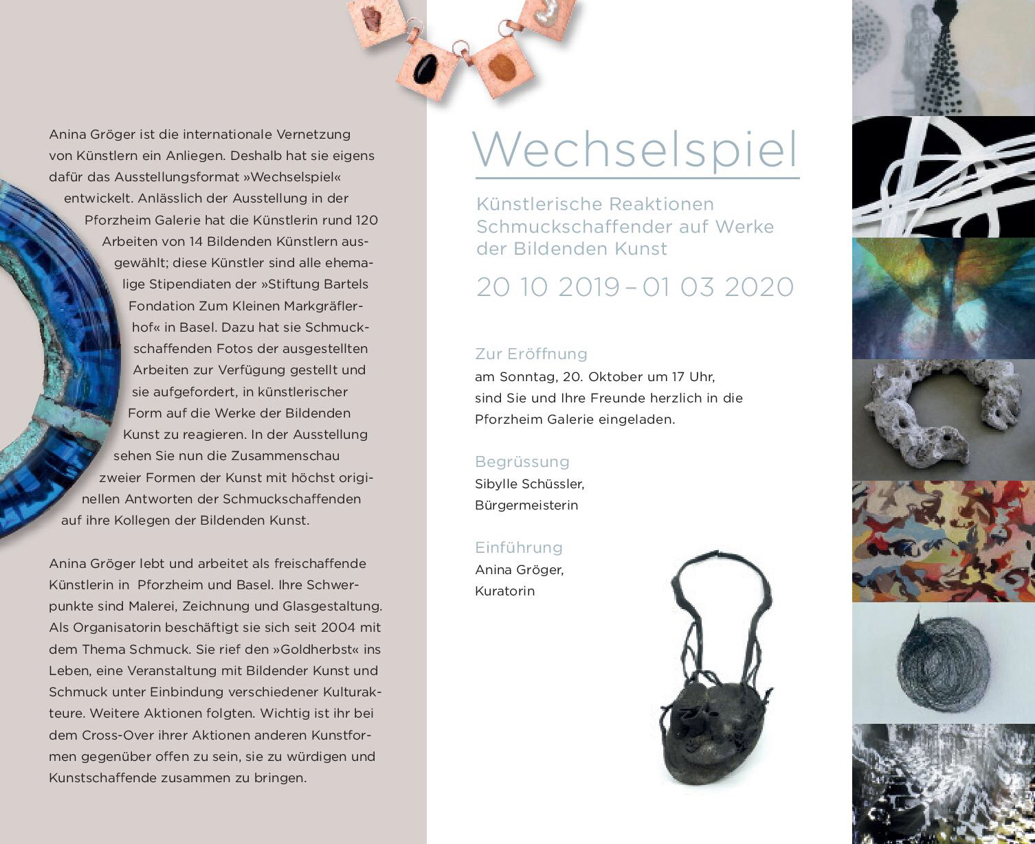 20. Oktober 2019 bis 1. März 2020: An der Ausstellung "Wechselspiel" in Pforzheim bin ich mit mehreren Arbeiten beteiligt. Vergrößern durch Anklicken. |